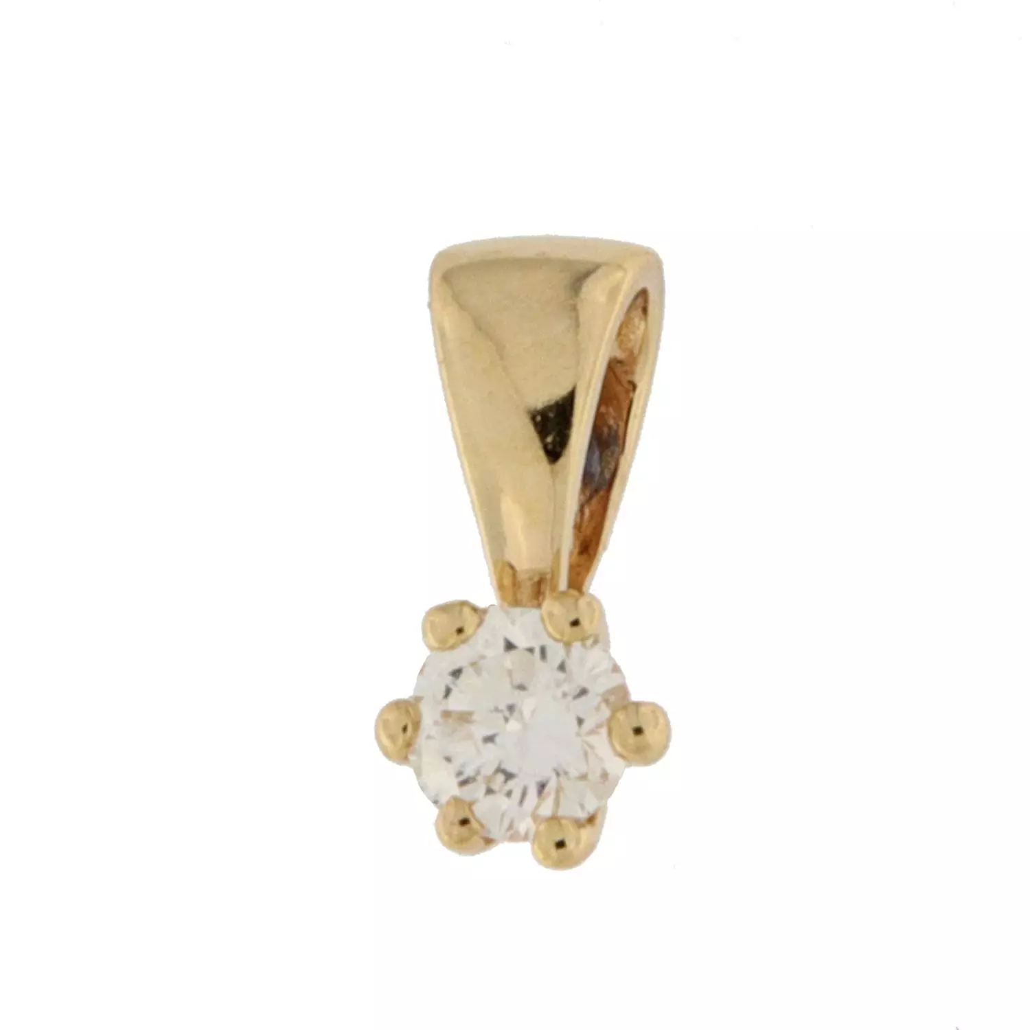 Anheng i 14 karat / 585 gult gull. 0,10ct WSI-3 diamant i seks klør, med trekant-hempe.