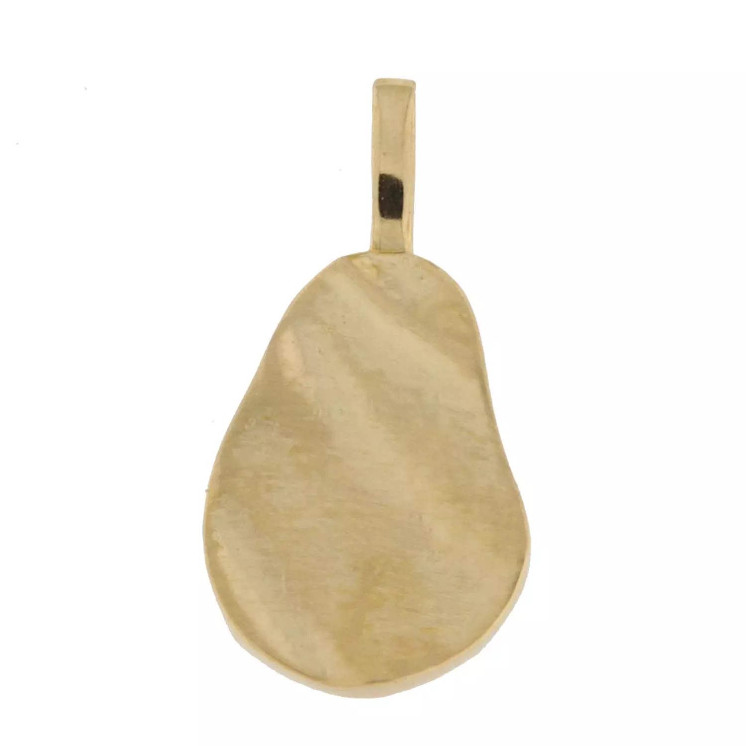 Anheng i 14 karat / 585 gult gull. 12 x 10mm banket, bølget plate med fast hempe. Hel lengde inkludert hempe er 18mm.