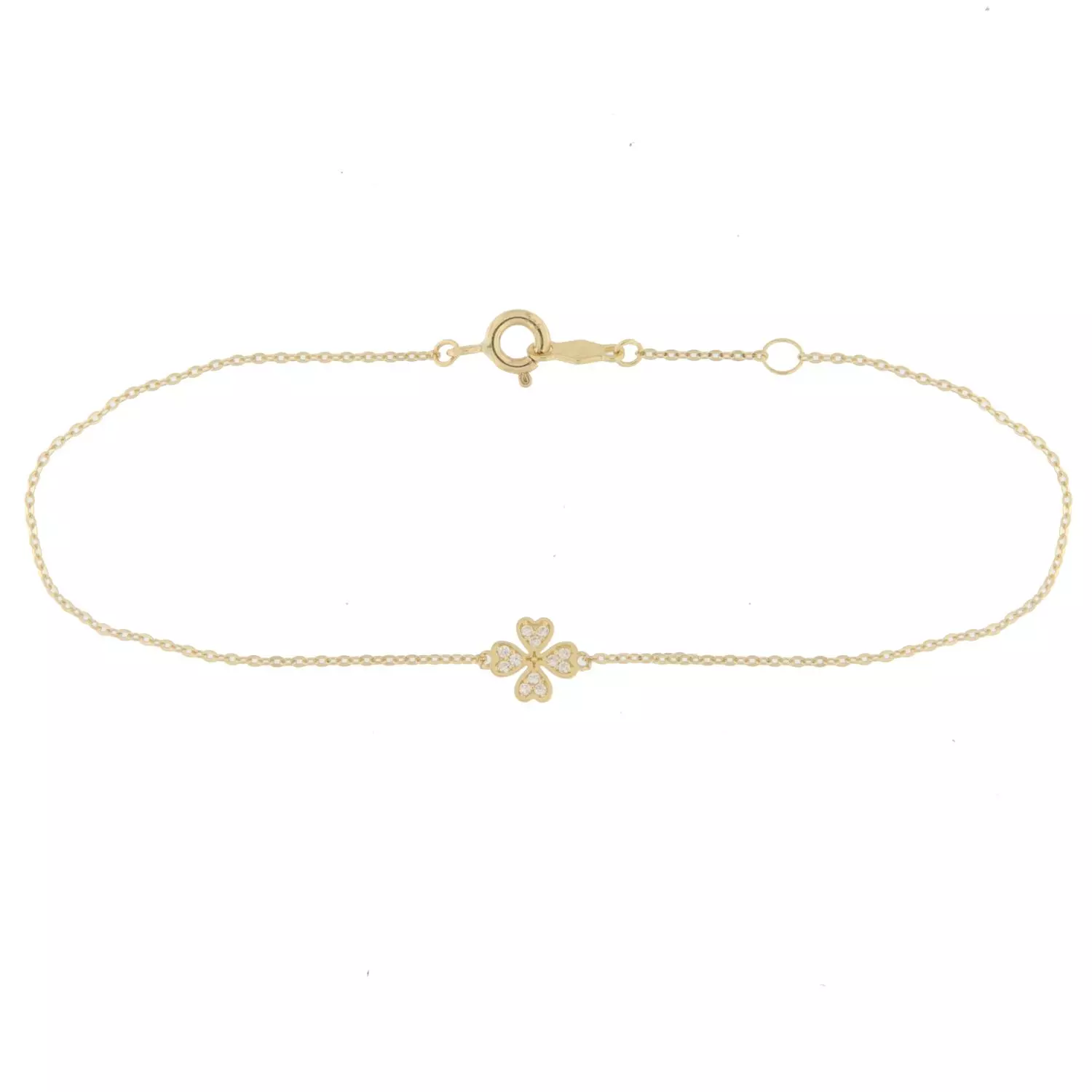 Armlenke i 9 karat / 375 gull fra Caia Jewelry. 7mm firkløver med blanke cubik zirconer i hele. Lengde 16 + 2cm.