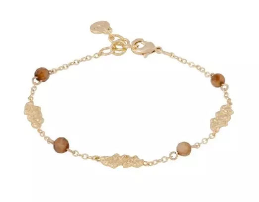 Armlenke i gullbelagt metall fra Snö of Sweden. 4mm brune glassperler og «nuggets» fast på kjede. Lengde 17 + 2cm.