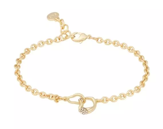 Armlenke i gullbelagt metall fra Snö of Sweden. To organisk formede ringer festet i hverandre, med blanke cubik zirconer på halve. Lengde 16 + 2cm.