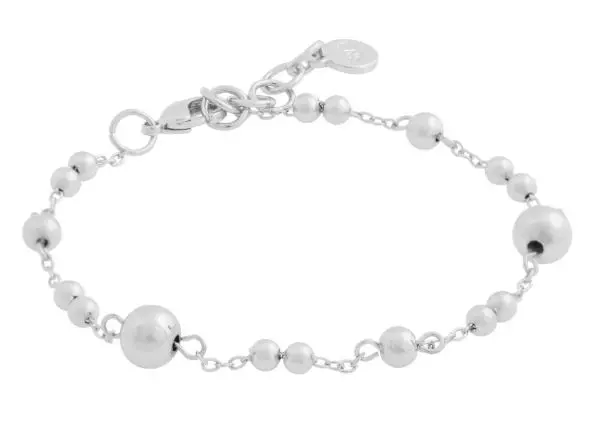 Armlenke i sølvbelagt metall fra Snö of Sweden. Doble 2mm og 7mm glatte kuler fast på lenken. Lengde 16 + 2cm.