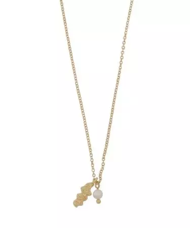 Halssmykke i gullbelagt metall fra Snö of Sweden. 12mm «nugget» hengende på ankerkjede. 4mm hvit glassperle hengende ved siden av. Lengde 46 + 5cm.