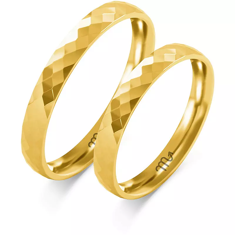 Forl.-/giftering gull 4mm buet profil, slipt mønster i hele ringen, buet innside
