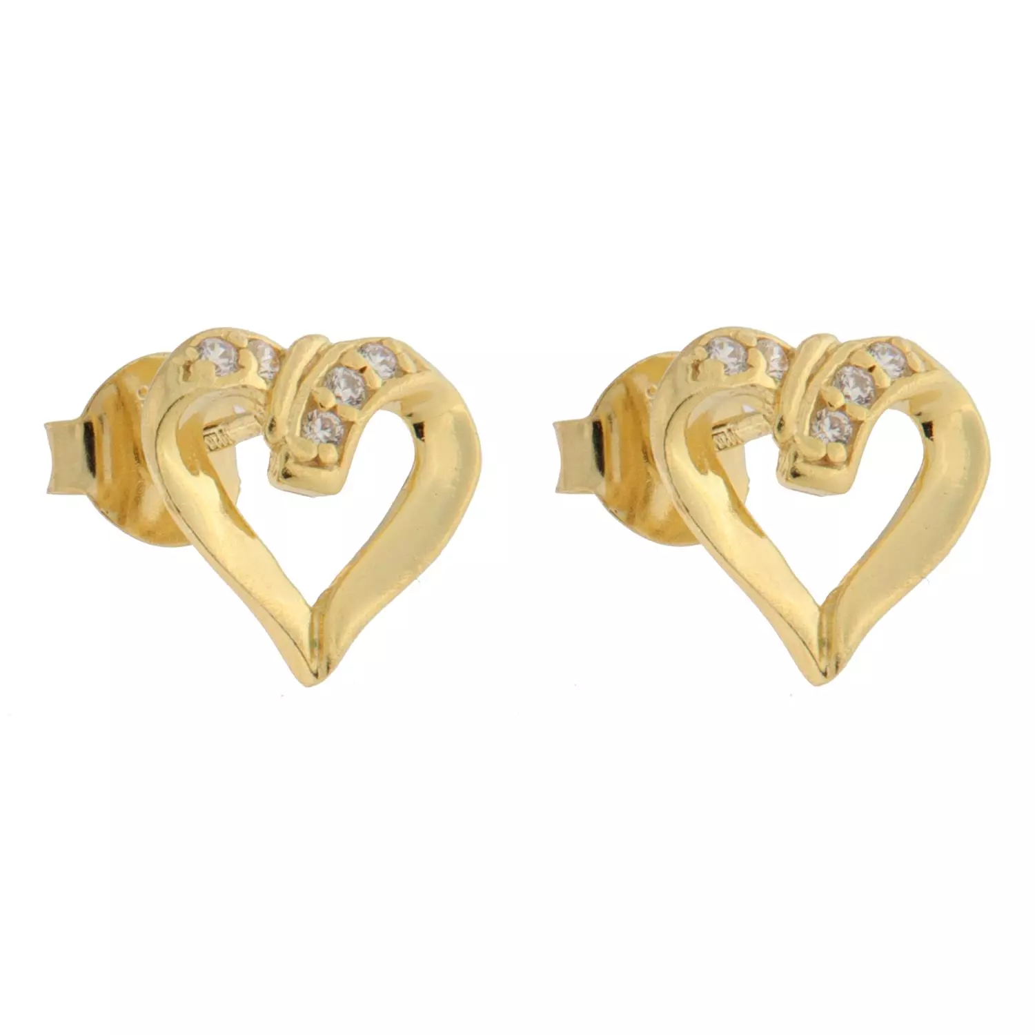 Ørepynt i forgylt sølv. 12mm åpent hjerte. Vridd i toppen, med blanke zirconer.
