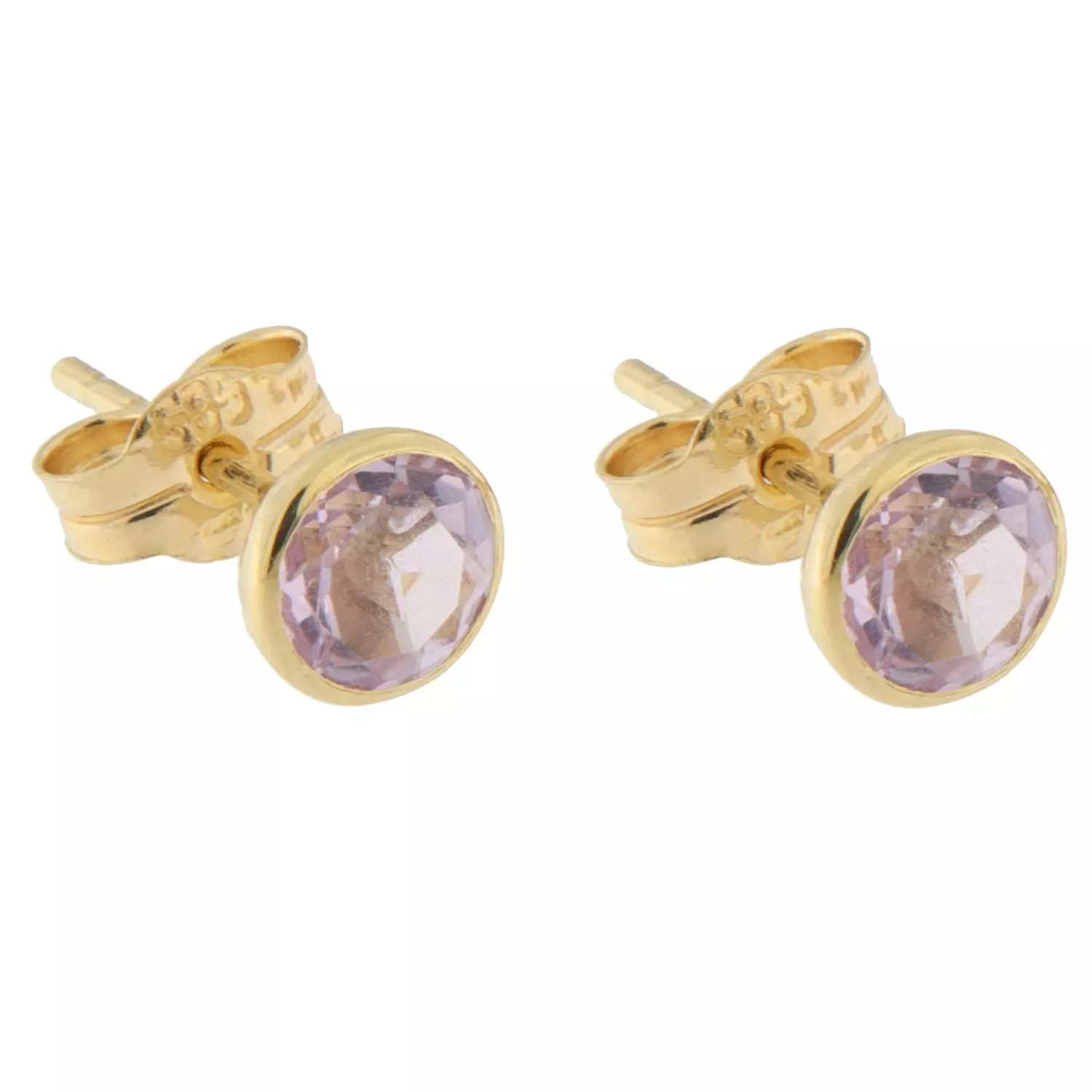 Ørepynt gull 5mm rosa ametyst i fattekant