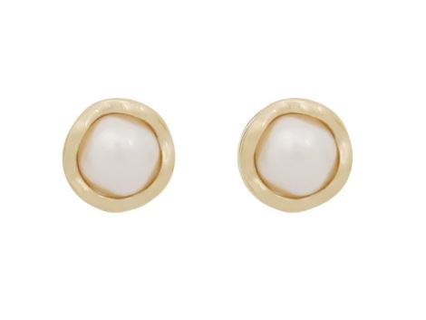 Ørepynt «gull» Kitty 5mm hvit perle i organisk fattekant