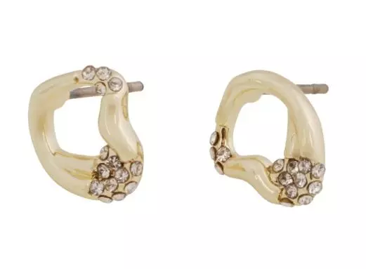 Ørepynt i gullbelagt metall fra Snö of Sweden.10mm organisk formede sirkler med blanke cubik zirconer på halve.