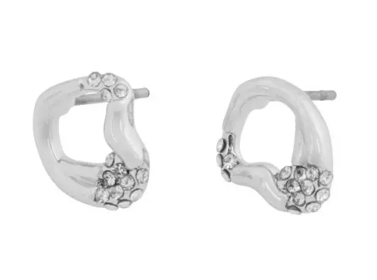 Ørepynt i sølvbelagt metall fra Snö of Sweden.10mm organisk formede sirkler med blanke cubik zirconer på halve.