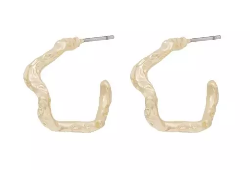 Ørering i gullbelagt metall fra Snö of Sweden. 20mm diameter bølgede, bankede øreringer. På stift med stoppere.